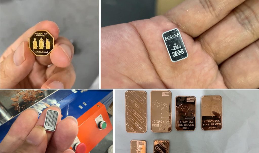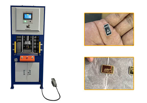 Totalmente automatizada y sin necesidad de operador, esta máquina utiliza una presión de 20 a 50 toneladas para producir hasta 20 piezas por minuto de monedas de oro o plata de 1 a 20 g. Todo el proceso, incluyendo alimentación, troquelado, estampado y expulsión, se realiza de manera automática con alta precisión.